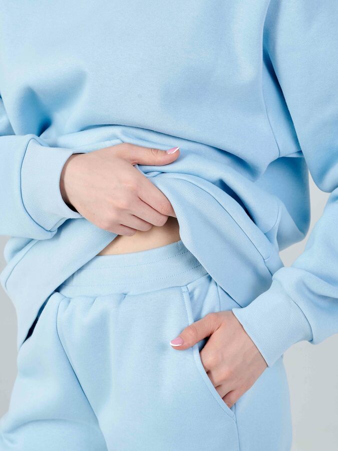 В первое время на теле могут оставаться ворсинки. Это особенность футера с начесом. Излишки ворса полностью вымываются после 3-4 стирок.