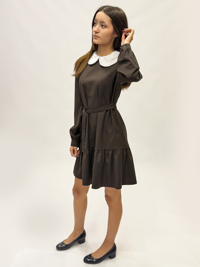 К этому платью рекомендуем воротник модель 75-2791,75-2801. Воротник пристегивается на пуговицы.